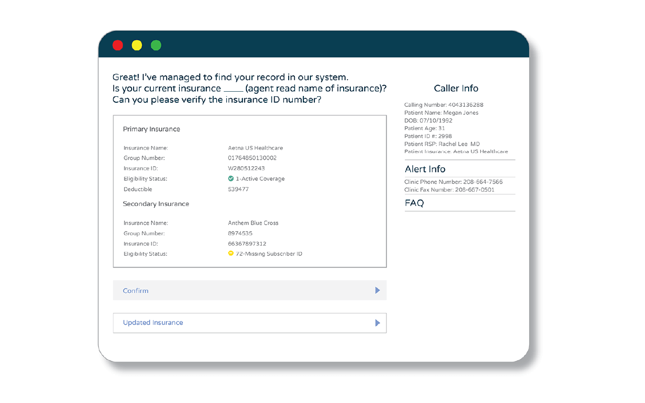 • Instantly Determine Eligibility: Spot and solve patient insurance issues fast to present accurate co-pays at check-in, seeing consistent collection rates of 96% or higher.