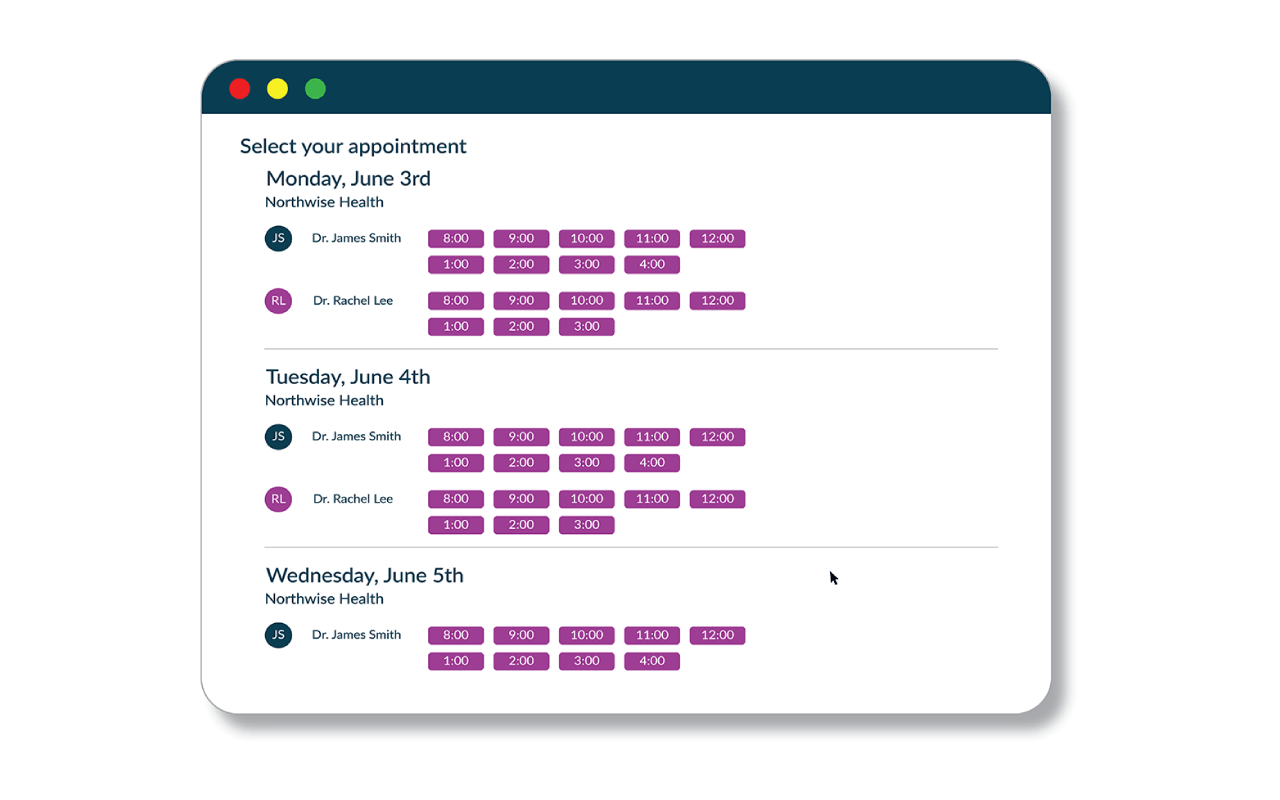 • Allow 24/7 Patient Booking: Give new and existing patients the convenience of booking appointments online, right when they’re top-of-mind. See up to a 174% increase in monthly visits and save staff up to 1,500 hours per year.