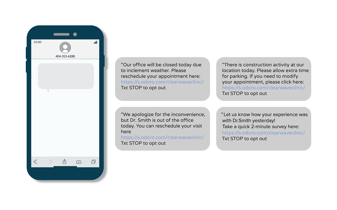 • Streamline Staff Communications: Provider out sick? Severe weather impacting appointments? Simplify staff outreach with push-of-a-button communications that keep patients in the loop while dropping staff workloads by 25%.