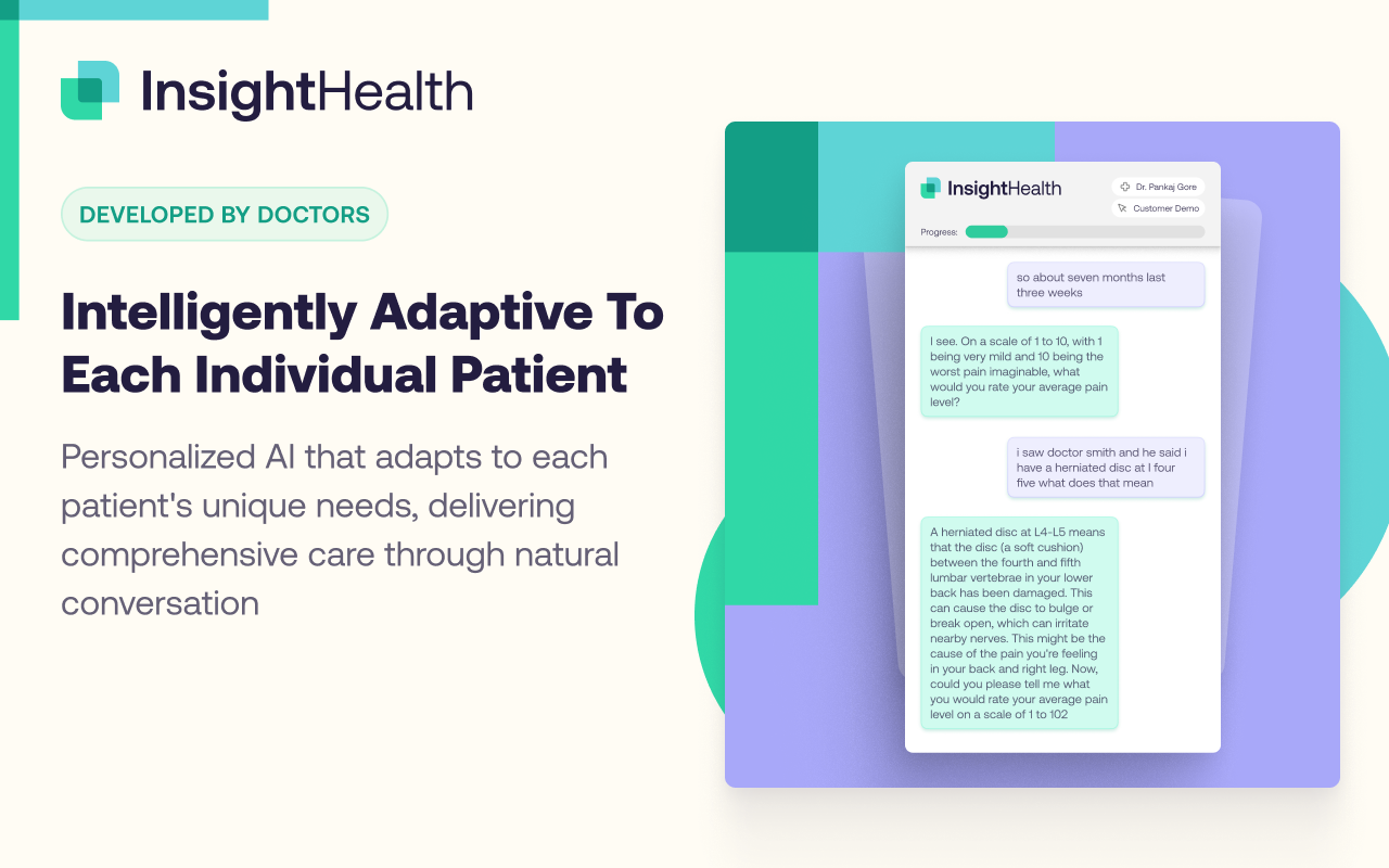 Discover how Insight Health's Virtual Care Agent can transform your practice with intelligently adaptive, specialty-specific AI that extends your care team's capabilities while prioritizing the patient experience.