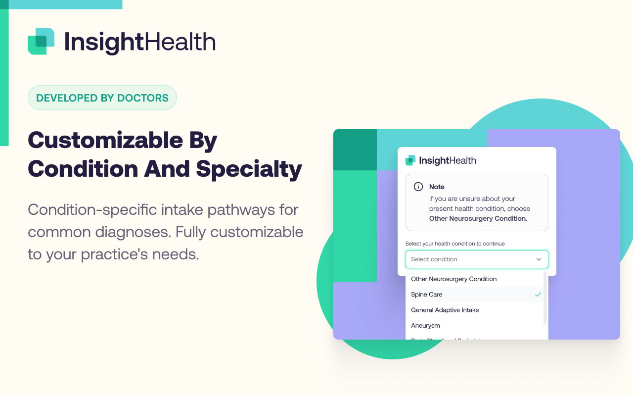 - Delivers specialty-specific, condition-tailored intake pathways.