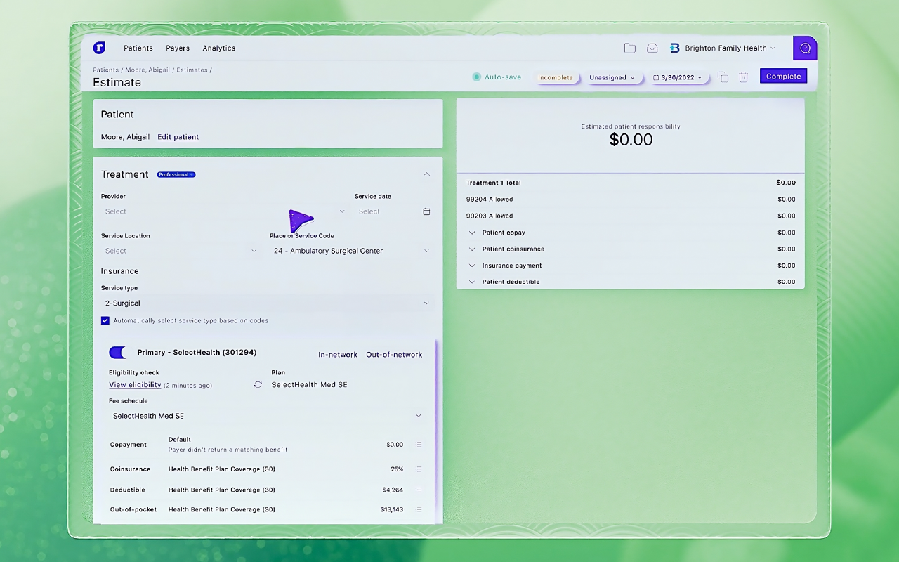 - Create accurate patient cost estimates in seconds