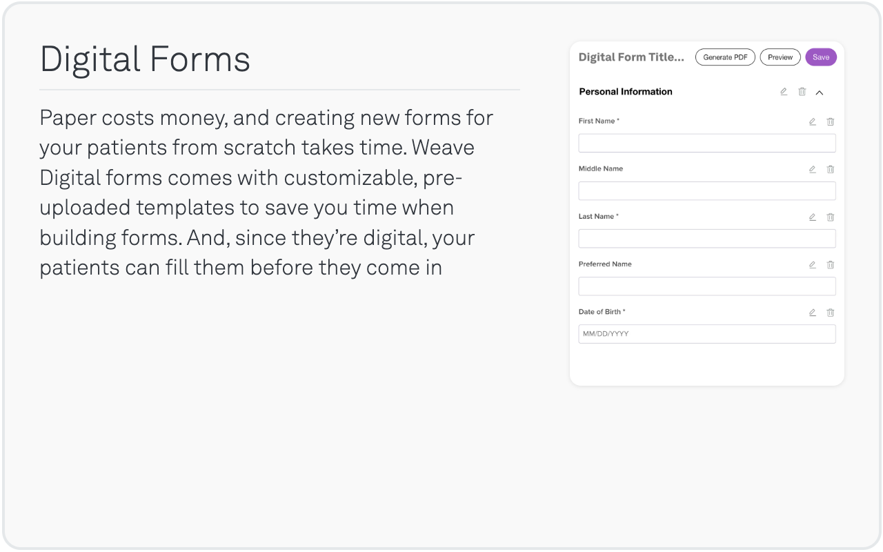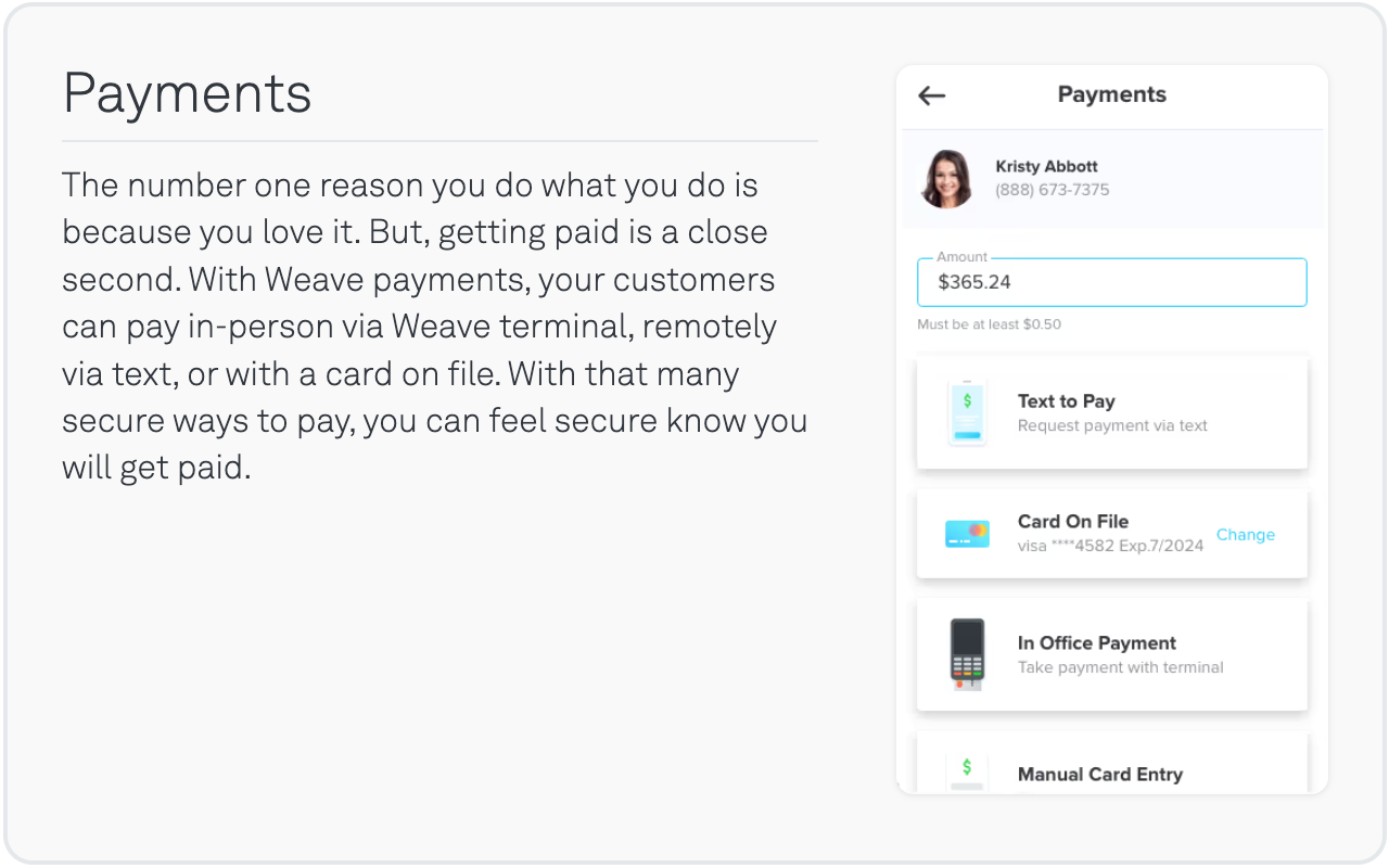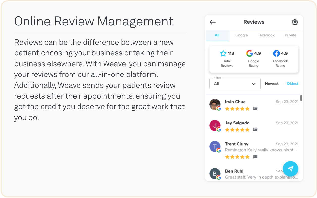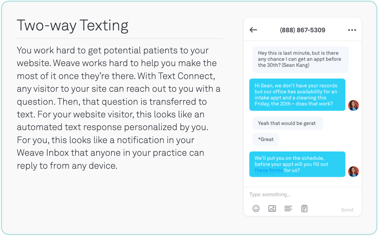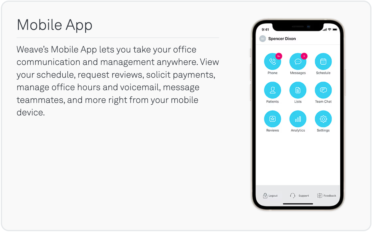 Weave's platform offers a unique combination of communication tools, including VoIP phones, texting, email, and payment solutions, all integrated into a single, easy-to-use interface. This integration ensures that practices can manage patient communications efficiently, leading to better patient outcomes and increased practice efficiency.